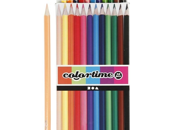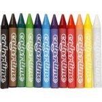 12 spalvingų vaškinių kreidelių.